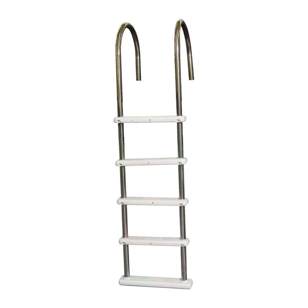 This super strong Stainless Steel Ladder brings the quality and strength of an in-ground ladder to your above-ground pool. Quality features make exiting and entering your pool easier than ever before. Super strong stainless steel rails allow the ladder to accommodate 275 lbs. Features polymer non-skid steps that are extra deep for sure footing. Ladder is designed to fit up to 54 in. deep pools. The base of the ladder pivots to conform to sloping pool bottoms. Comes with white plastic flanges for secure deck mounting. 1-Year Warranty.