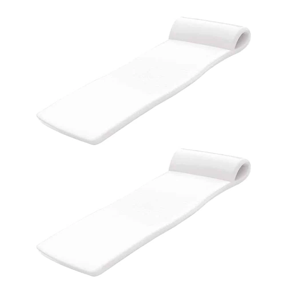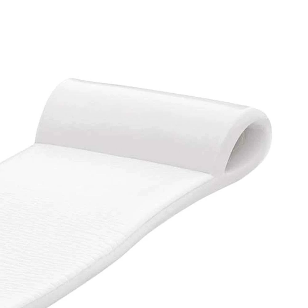 From the pool side to the lake, you can relax in style and lounge around without worrying about troublesome air pumps or inflation thanks to the Texas Recreation Sunsation Lounger Raft Pool Float. Durable and amazingly buoyant, this TRC Recreation Sunsation pool float is crafted with tough yet comfortable 1.75 in. thick foam. The vinyl coating proofs this Texas Recreation pool float from water absorption, while the fresh white color adds a stylish flair to any pool party. Measuring 70 in. L and 26 in. W, this pool float is large enough for a full sized adult and features a roll pillow to support your head. TRC pool loungers are built for comfort and durability, so choose this mat float the next time you hit the swimming pool.
