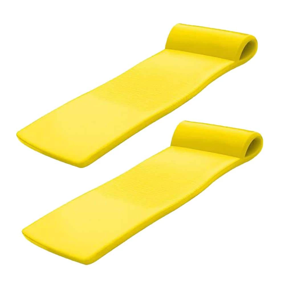 Relax in style this summer with the Texas Recreation Sunsation 70 in. Foam Raft Lounger Pool Float, Yellow (2-Pack). This pool float is crafted from 1.75 in. thick buoyant foam and waterproof vinyl coating for added durability. Moreover, this pool features a roll pillow for providing support to the head. It is a perfect pool accessory that lets you relax and chill while enjoying in the pool.