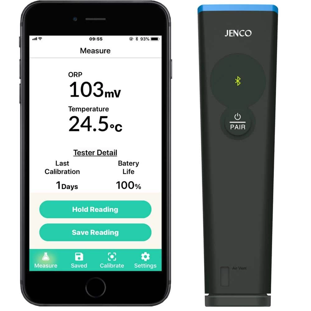 By combining accurate water quality electronics with the power and convenience of your smartphone, the Jenco waterproof Bluetooth ORP and temperature tester is the easiest way to accurately measure ORP and temperature of your pool, spa, aquarium, drinking water or other aqueous solutions found in or around your home. The free iOS and Android apps work similarly to the apps you use every day, deploying well-thought-out design and jargon-free language to display ORP reading, temperature reading, last calibration date and battery life. Perform calibration of the tester through simplified step-by-step procedure, and easily change temperature unit of measure in settings. Our Pro apps include advanced features such as logging measurement readings with GPS coordinates and logging past calibration data, and are available for purchase in Apple App Store and Google Play Store. The testers accurate signal processing components are protected against the elements by an IP67 waterproof housing. Batteries included. About Jenco: were a water quality instruments manufacturer with 45 years of specialization in pH, ORP, conductivity, TDS, salinity, resistivity, dissolved oxygen, ion, turbidity and temperature instruments. Our products ship and are supported from our San Diego office.