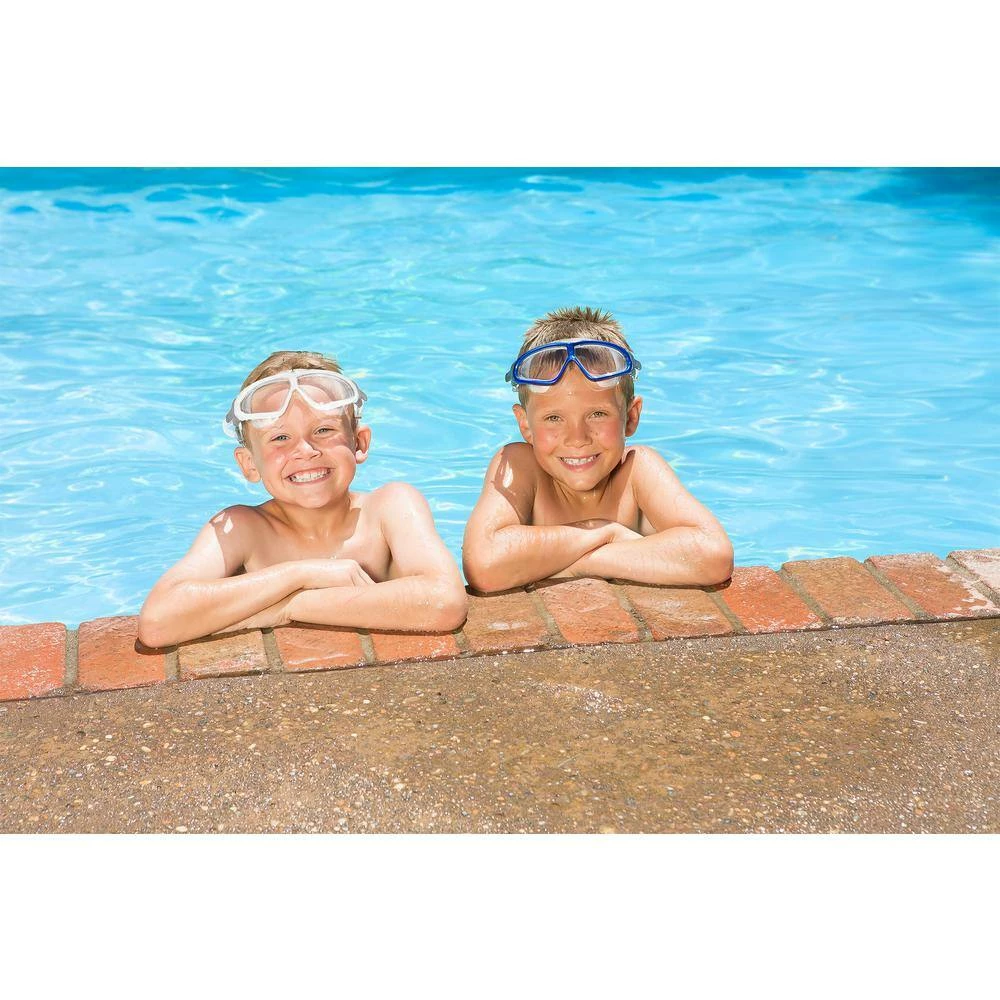 Truly a 1 Size Fits All swim goggle that functions as a Hybrid goggle/mask. Sporting Deluxe Silicone skirt that feels soft against the face and provides a comfortable secure seal. The Wide-Angle Lens provides for a great field of vision while swimming in the pool. The lens features UV and Anti-Fog Protection. The Lift-Lever Buckle allows for quick, easy-glide adjustments as needed. Universal Fit for everyone.