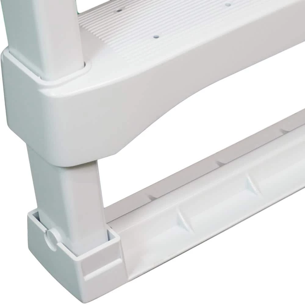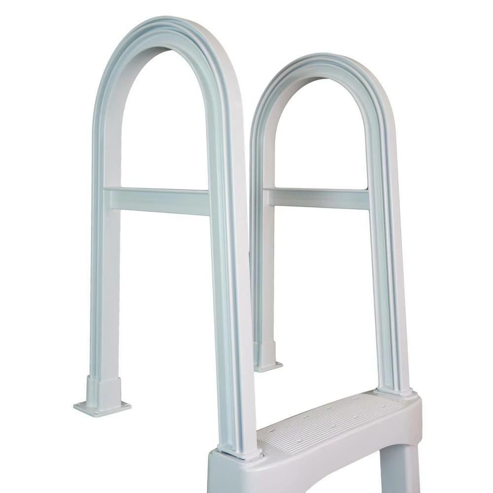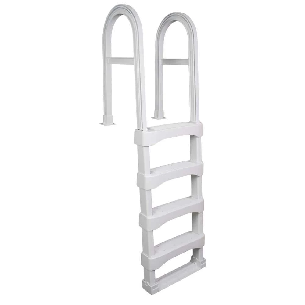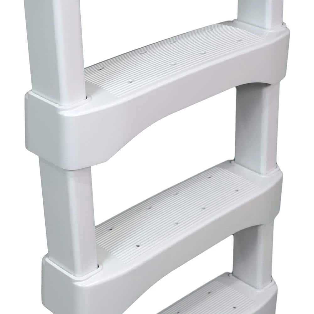 Enter and exit your above-ground swimming pool safely and confidently with the Snap-Lock Deck Ladder. Constructed from maintenance-free, high-density polyethylene, this sturdy pool ladder will not rust or corrode. Its unique, snap-lock construction eliminates the need for metal hardware, making it simple to install. Designed to fit above-ground pools up to 60 in. D, this in-pool ladder is perfect for taller pools and decks. Double, ergonomic handrails and 5.5 in. D, non-skid treads ensure safety as you climb in or out of your pool. A pivotal bottom tread with an anti-slip base adjusts to sloping pool bottoms for stable grounding. Comes with white, plastic flanges for secure deck mounting. Accommodates up to 300 lbs. 1-year limited warranty.